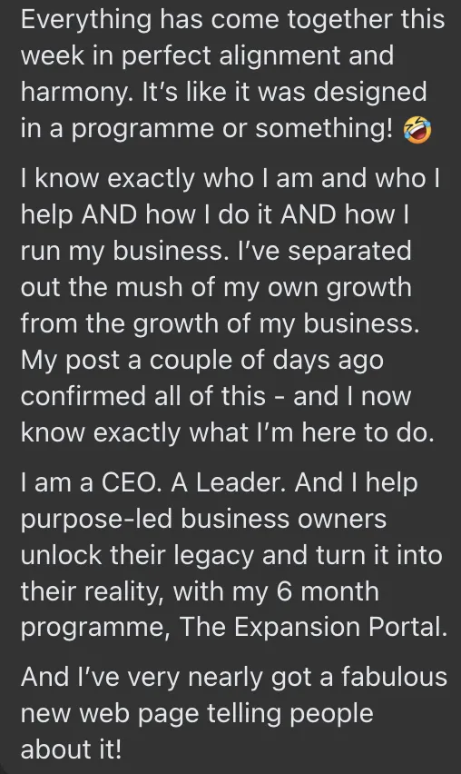 That’s when I understood: you can’t amplify what isn’t aligned. Your expert identity has to lead - or nothing truly lands.